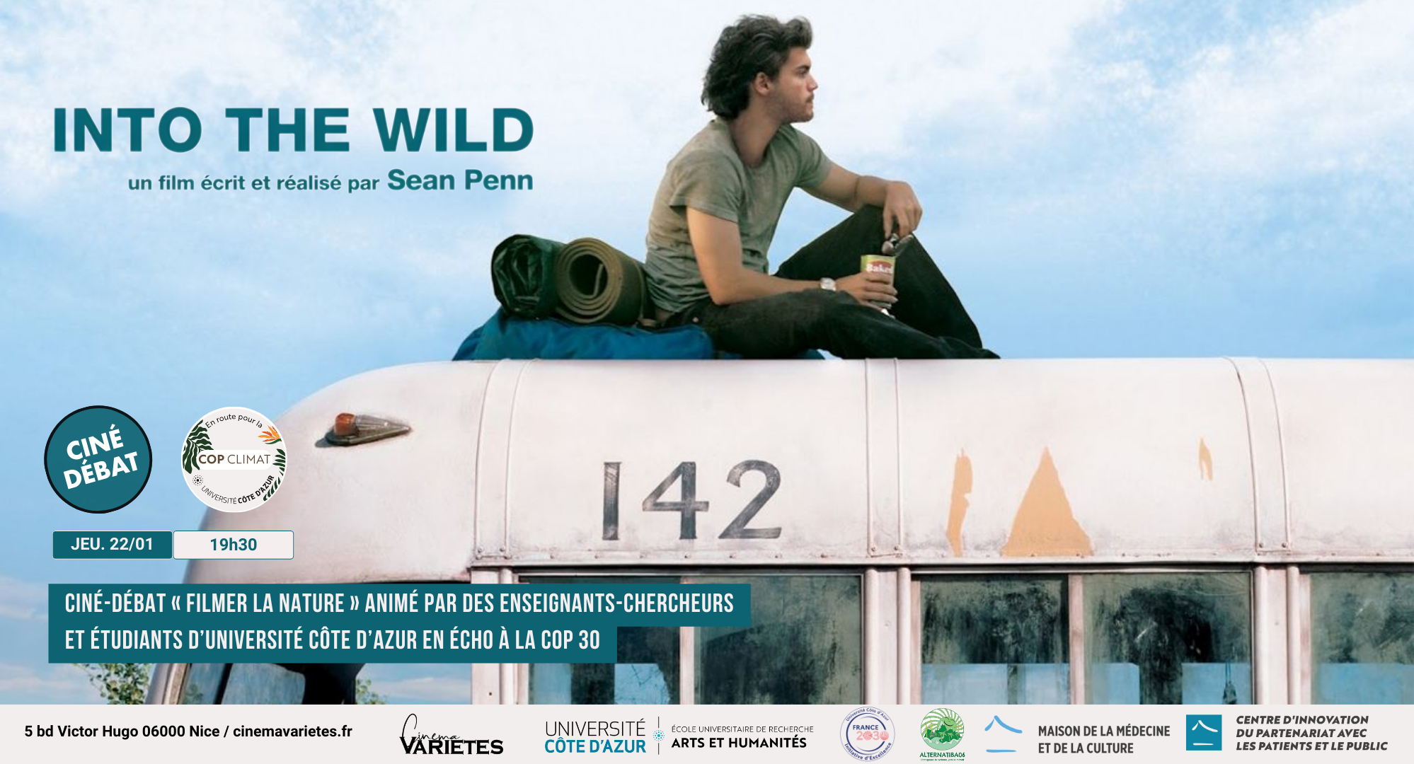 Sean Penn's film "Into the Wild" (2007) will be screened, followed by a discussion with speakers from Université Côte d'Azur (students and teachers).