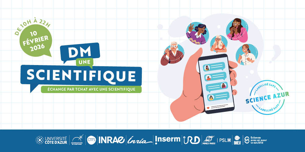 In preparation for International Day of Women and Girls in Science, and as part of the SCIENCE AZUR project, recently awarded the Science Avec et Pour la Société (SAPS) label by the French Ministry of Higher Education, Research and Space, we're delighted to invite you to a virtual event! On February 10, 2025, from 10 a.m. to 10 p.m., join us for a live chat with inspiring women scientists.