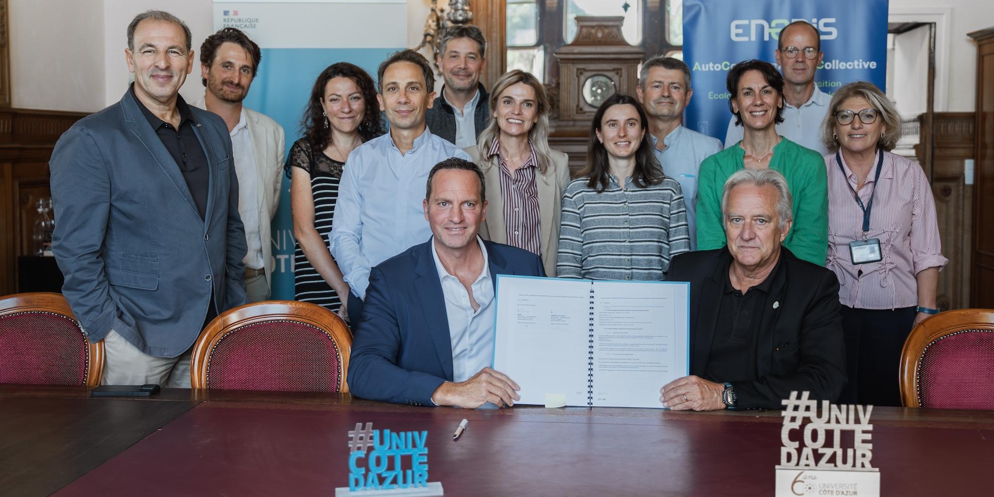 October 1, 2025Université Côte d'Azur and Enedis signed an agreement on Wednesday, September 24, 2025, on the Valrose Campus in Nice, to set up a collective solar energy self-consumption loop linking three of its Nice campuses: the Trotabas campus, the Carlone campus and the Fabron campus. -