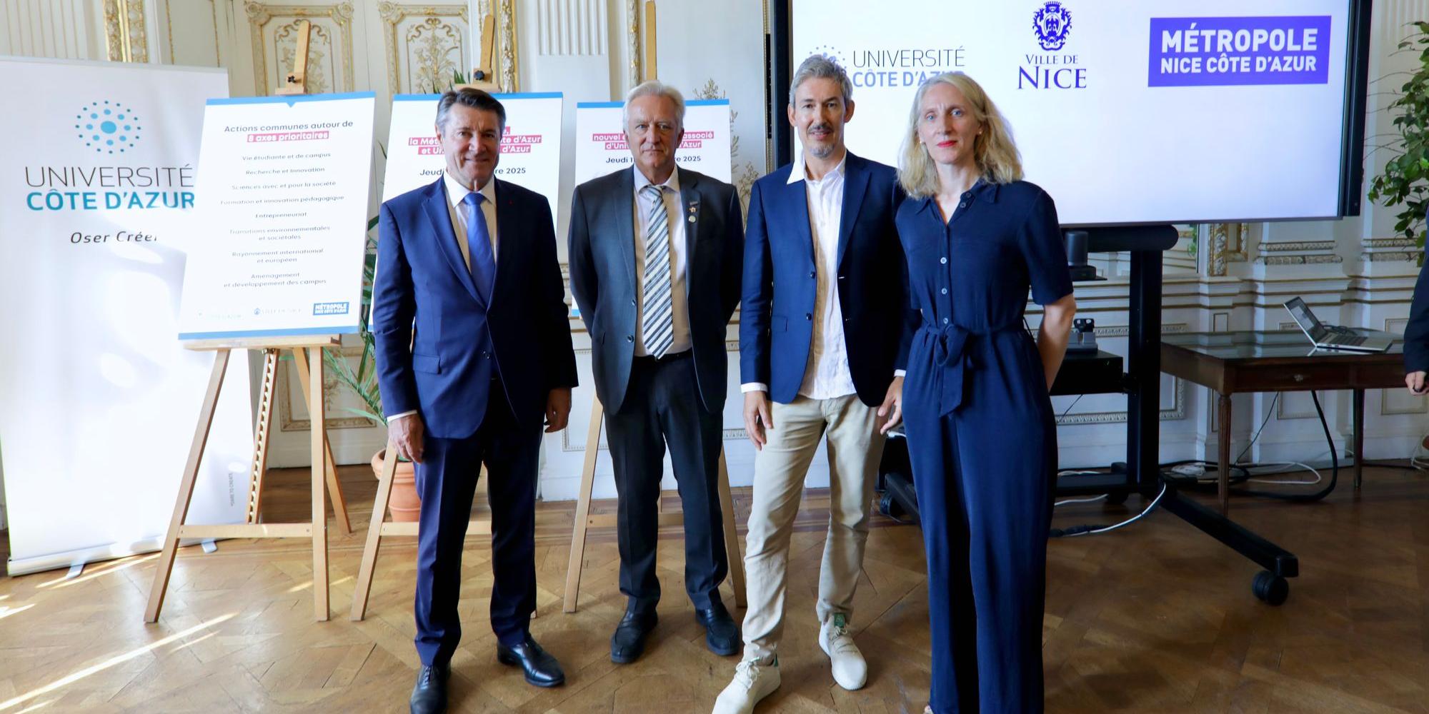 September 22, 2025On Thursday September 11, 2025, Université Côte d'Azur celebrated the signing of two major agreements on the Valrose campus, in the presence of Jeanick Brisswalter, President of Université Côte d'Azur, Christian Estrosi, Mayor of Nice and President of the Nice Côte d'Azur Metropolis, Karin Houpillart and Xavier Rousselle, Director and Principal of ISART Digital, alongside students from the new pharmacy department and ISART pupils. -